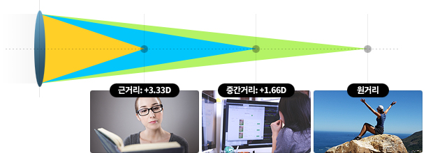연속 다초점 구간으로 제작하여 시야를 옮기면서 모니터 거리 같은 중간 거리 흐린 부분 보완하여 포괄적인 선명한 시력을 유지할 수 있습니다.