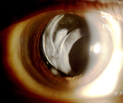백내장 수술시 삽입했던 인공수정체가 정상 위치를 벗아난 경우를 말하며, 이탈된 정도에 따라 앞이 뿌옇게 보이고, 시력저하가 나타납니다.