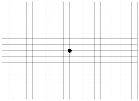 - 1 한쪽 눈을 가리고 30cm정도 거리에서 격자의 둥근 점을 주시합니다.