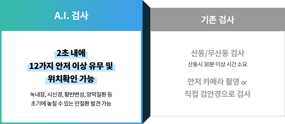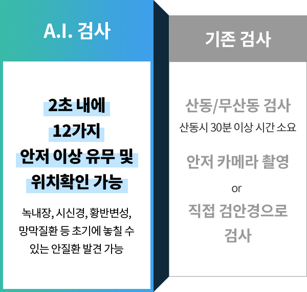 녹내장, 당뇨망막병증, 황반변성을 조기에 발견할 수 있습니다!인공지능 A.I. 검사와 기존 검사 비교