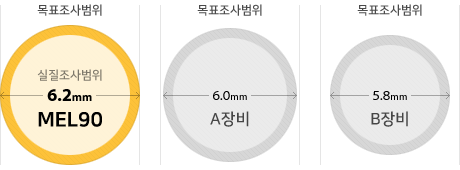 타 기종에 비해 목표 조사범위보다 실제 조사 범위가 더 넓어서, 같은 동공크기에 맞추 어 수술한 경우 더 넓게 수술한 효과를 볼 수 있어 야간 빛 번짐을 최소화 합니다.